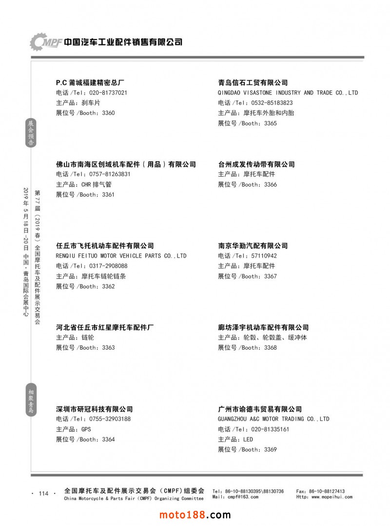內113 第76屆(2018秋)全國摩托車及配件展示交易會-廣州站參展企業(yè)信息