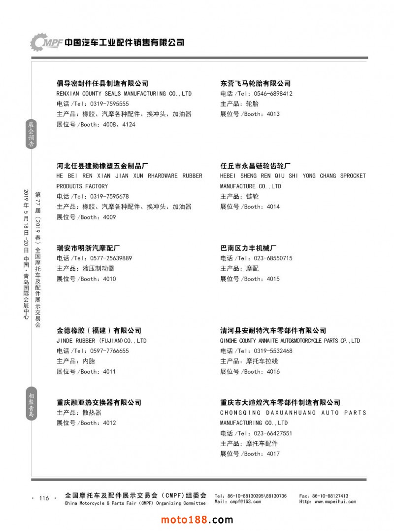 內(nèi)116 第76屆(2018秋)全國(guó)摩托車(chē)及配件展示交易會(huì)-廣州站參展企業(yè)信息