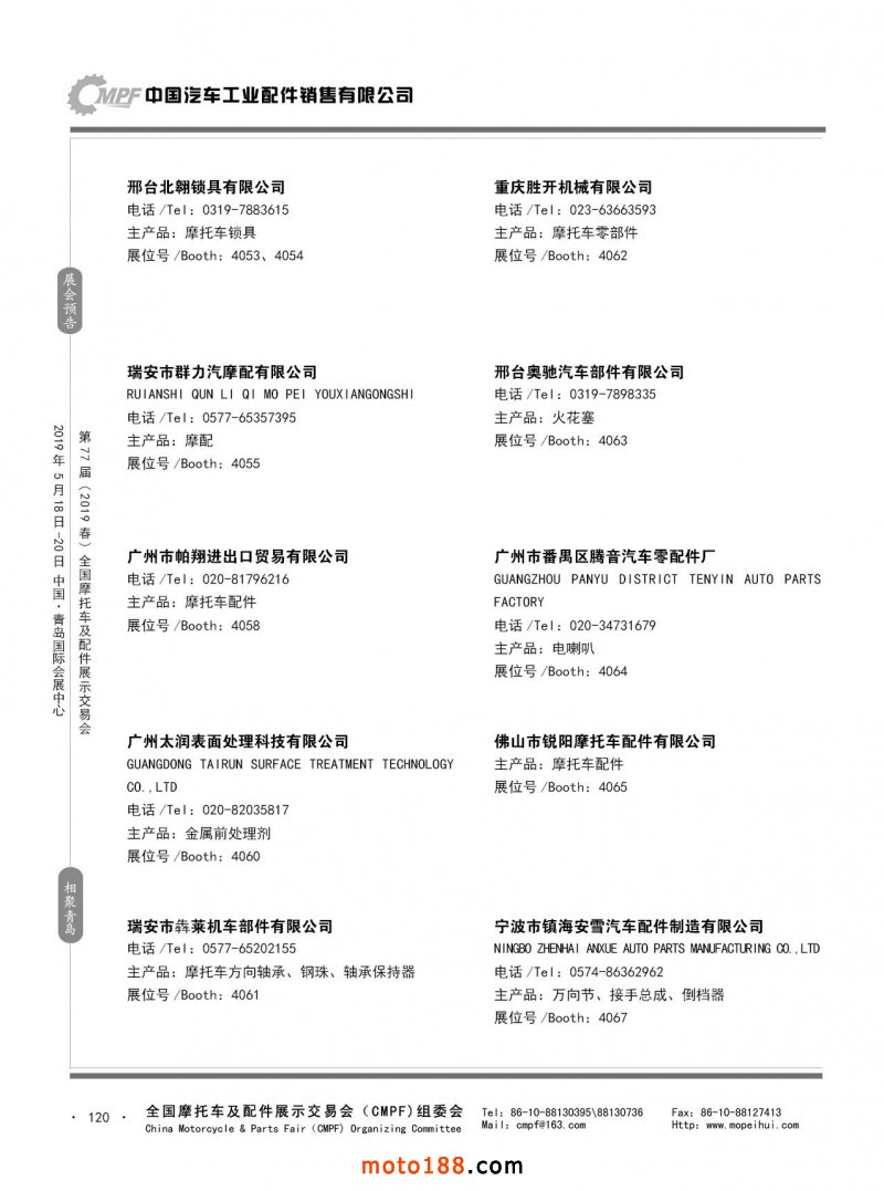 內(nèi)120 第76屆(2018秋)全國摩托車及配件展示交易會-廣州站參展企業(yè)信息