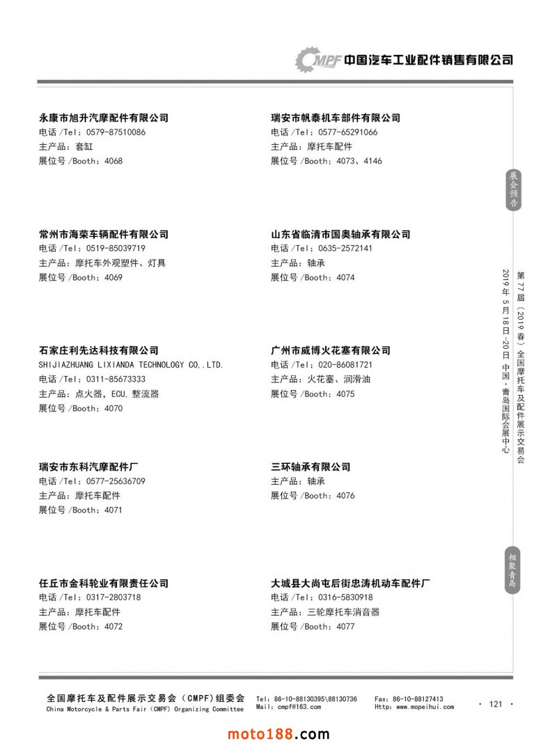 內(nèi)121 第76屆(2018秋)全國摩托車及配件展示交易會(huì)-廣州站參展企業(yè)信息