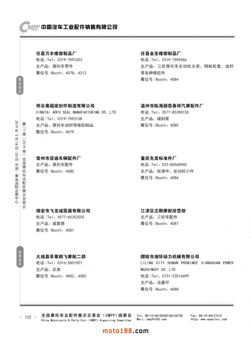 內121 第76屆(2018秋)全國摩托車及配件展示交易會-廣州站參展企業(yè)信息