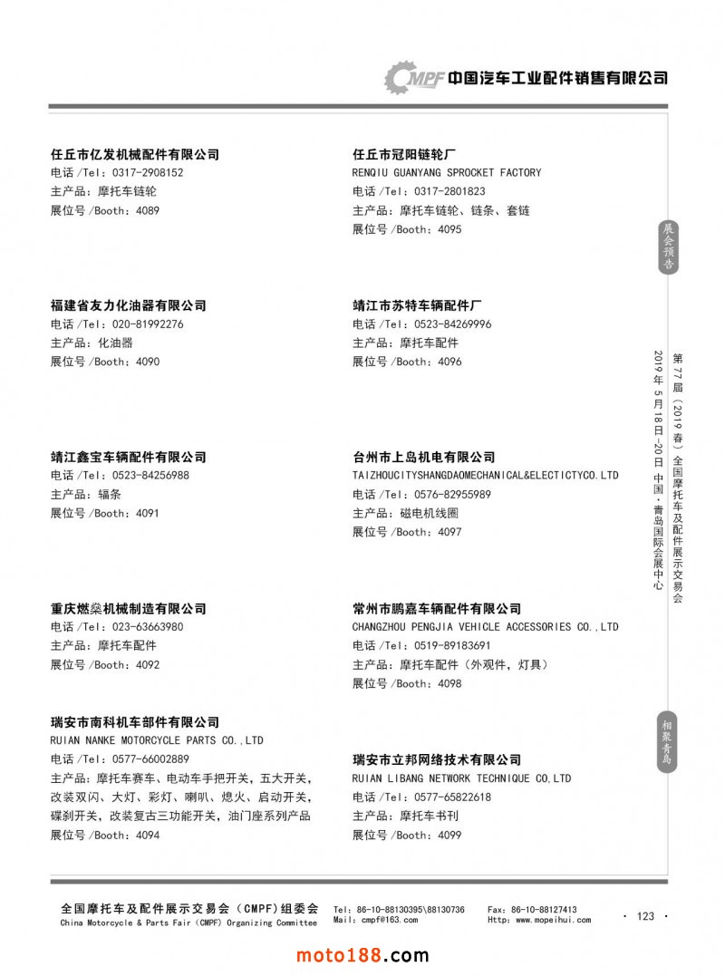 內(nèi)123 第76屆(2018秋)全國摩托車及配件展示交易會(huì)-廣州站參展企業(yè)信息