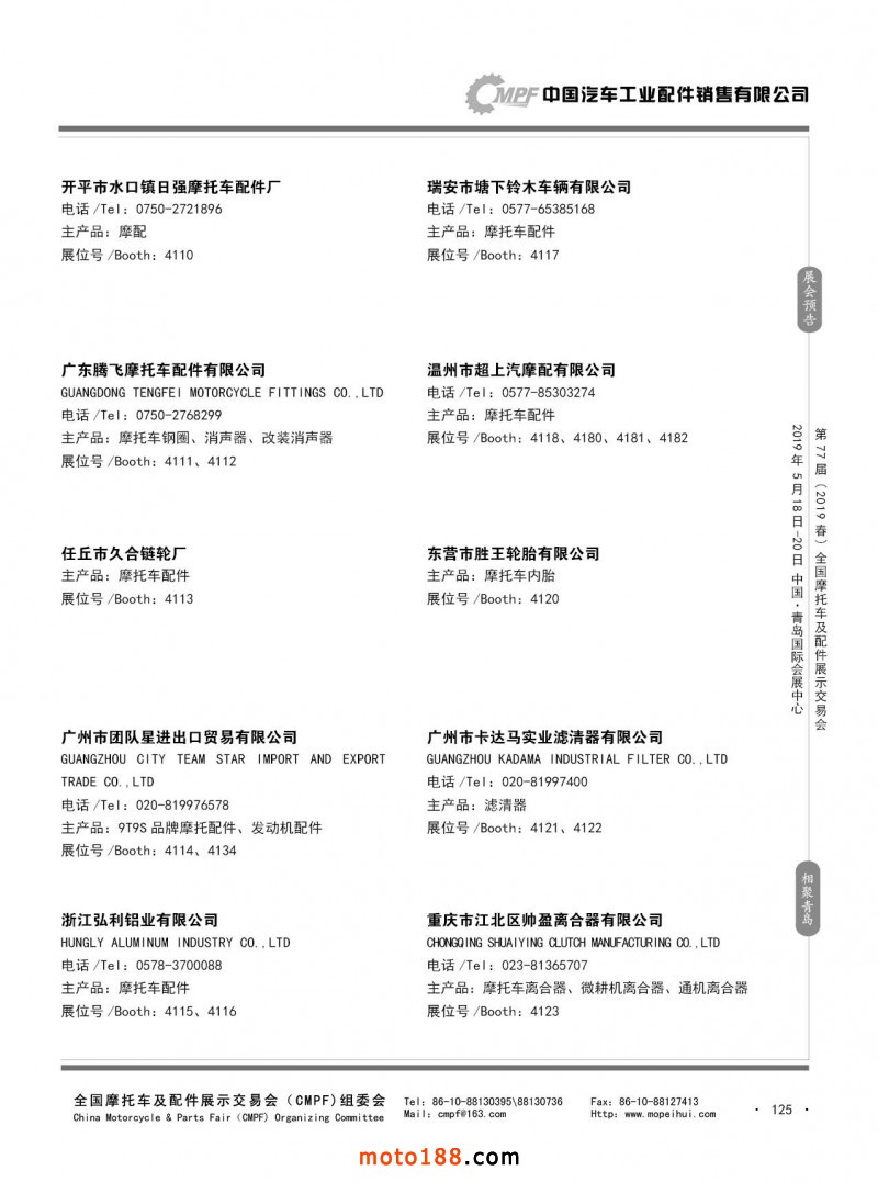 內(nèi)125 第76屆(2018秋)全國(guó)摩托車及配件展示交易會(huì)-廣州站參展企業(yè)信息