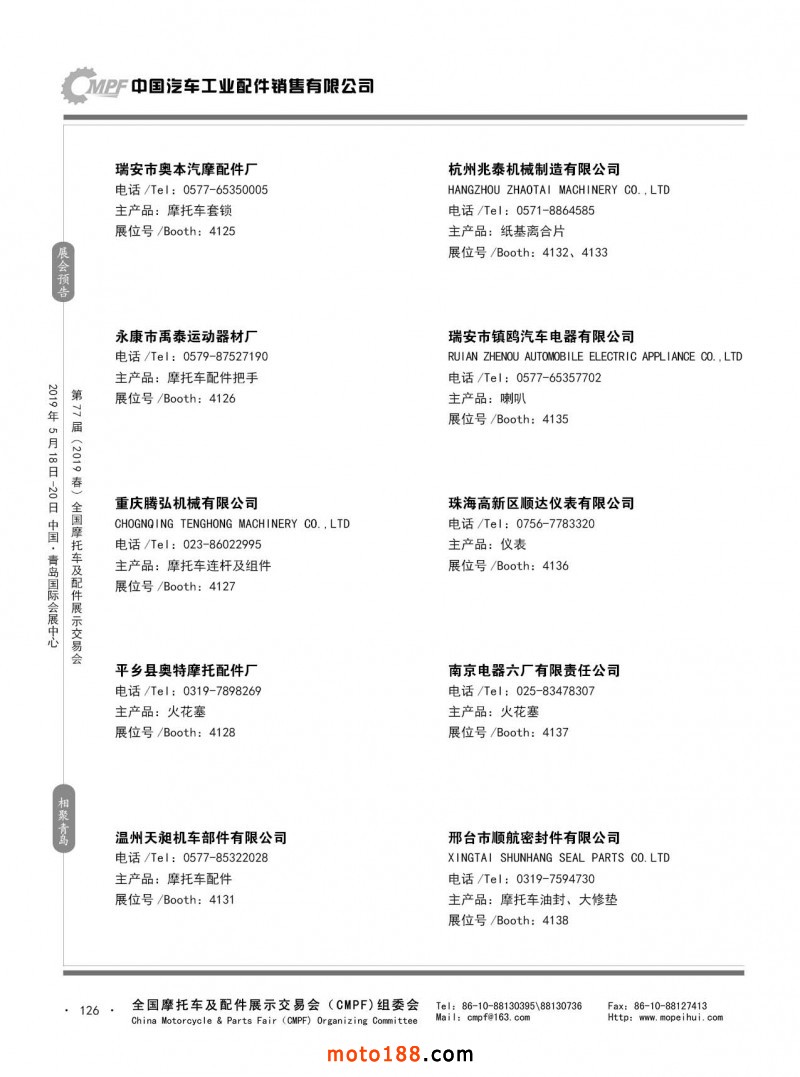 內(nèi)126 第76屆(2018秋)全國(guó)摩托車(chē)及配件展示交易會(huì)-廣州站參展企業(yè)信息