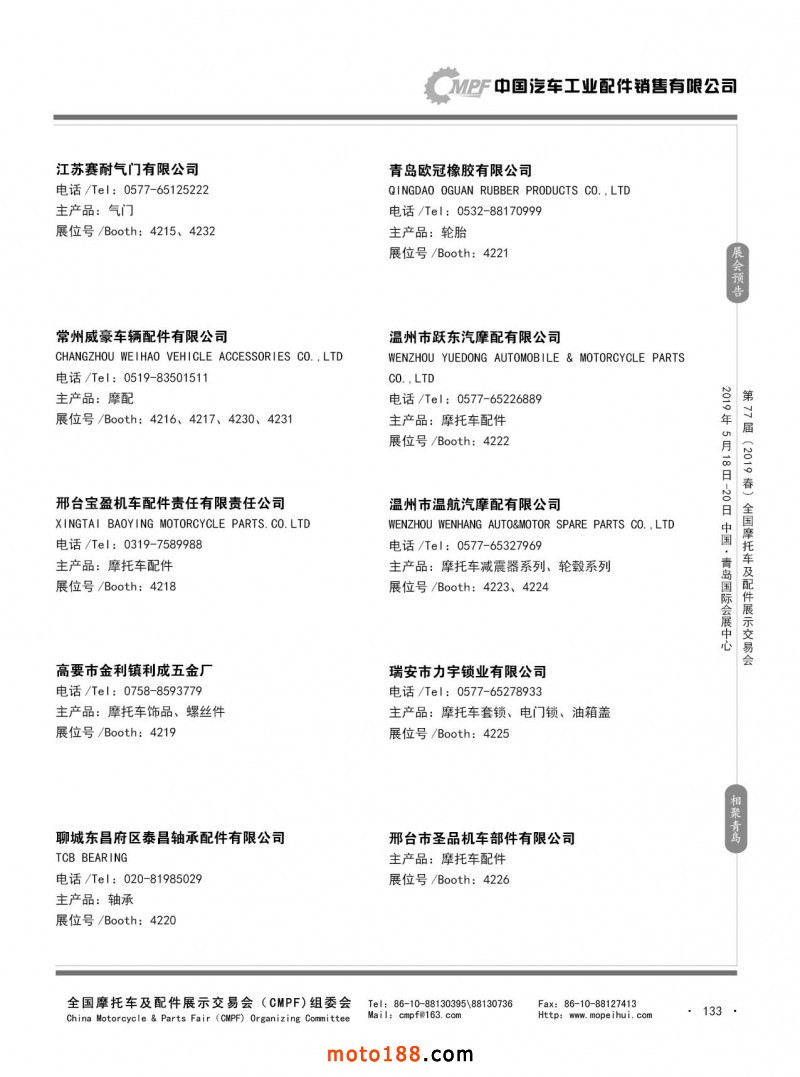 內(nèi)133 第76屆(2018秋)全國(guó)摩托車及配件展示交易會(huì)-廣州站參展企業(yè)信息