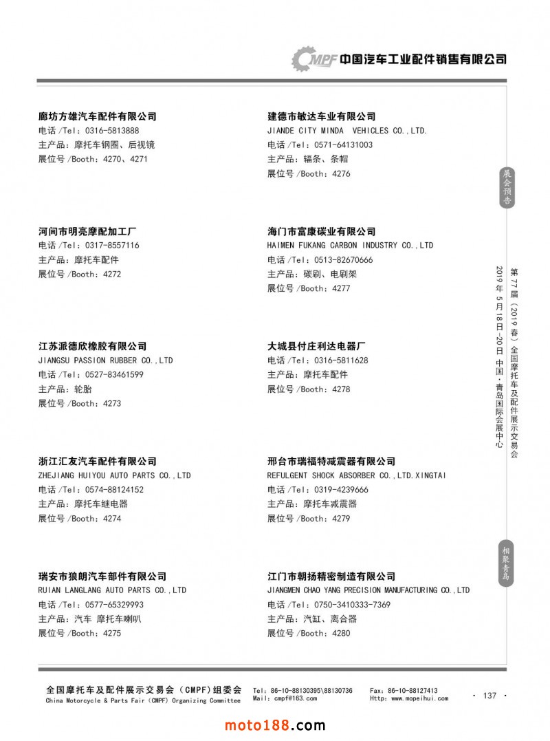 內(nèi)137 第76屆(2018秋)全國摩托車及配件展示交易會(huì)-廣州站參展企業(yè)信息