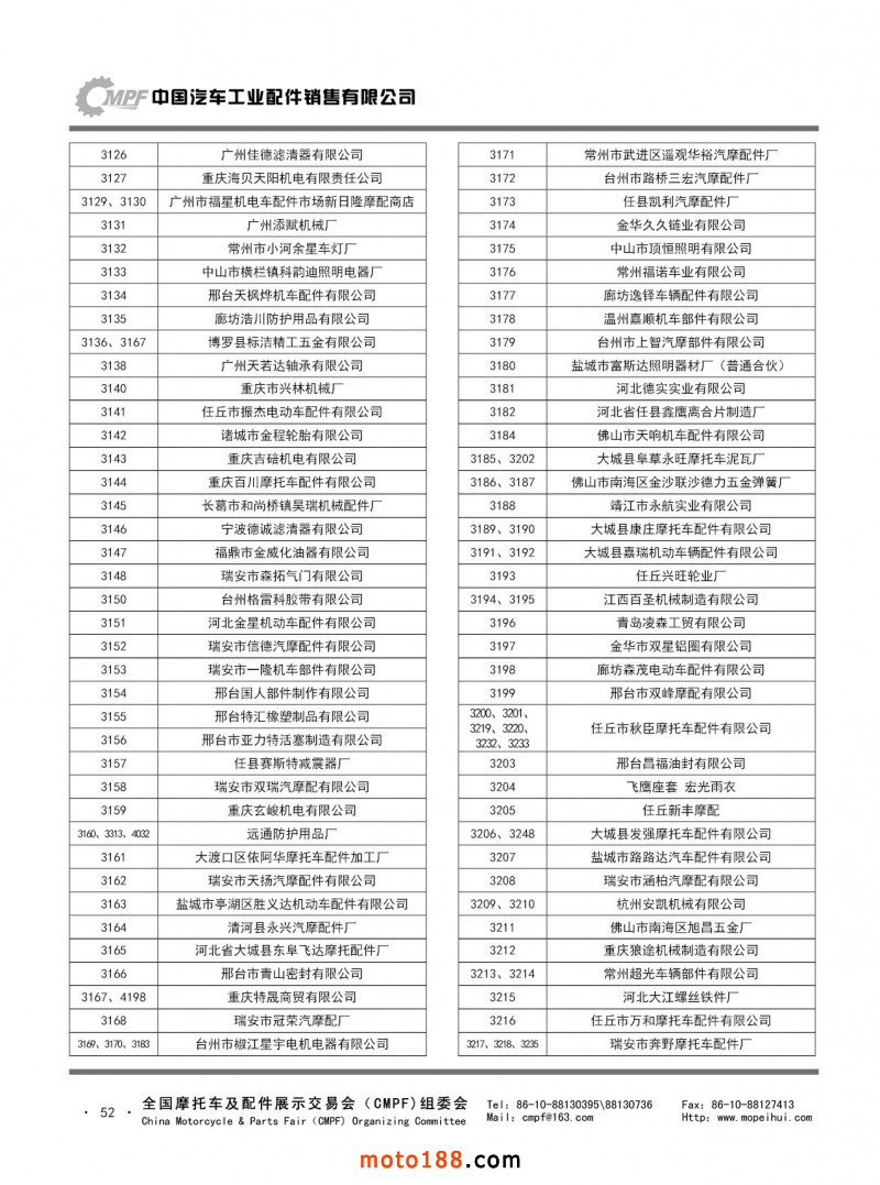 內(nèi)52 第76屆(2018秋)全國摩托車及配件展示交易會-廣州站參展單位名錄第76屆(2018秋)全國摩托車及配件展示交易會-廣州站參展單位名錄