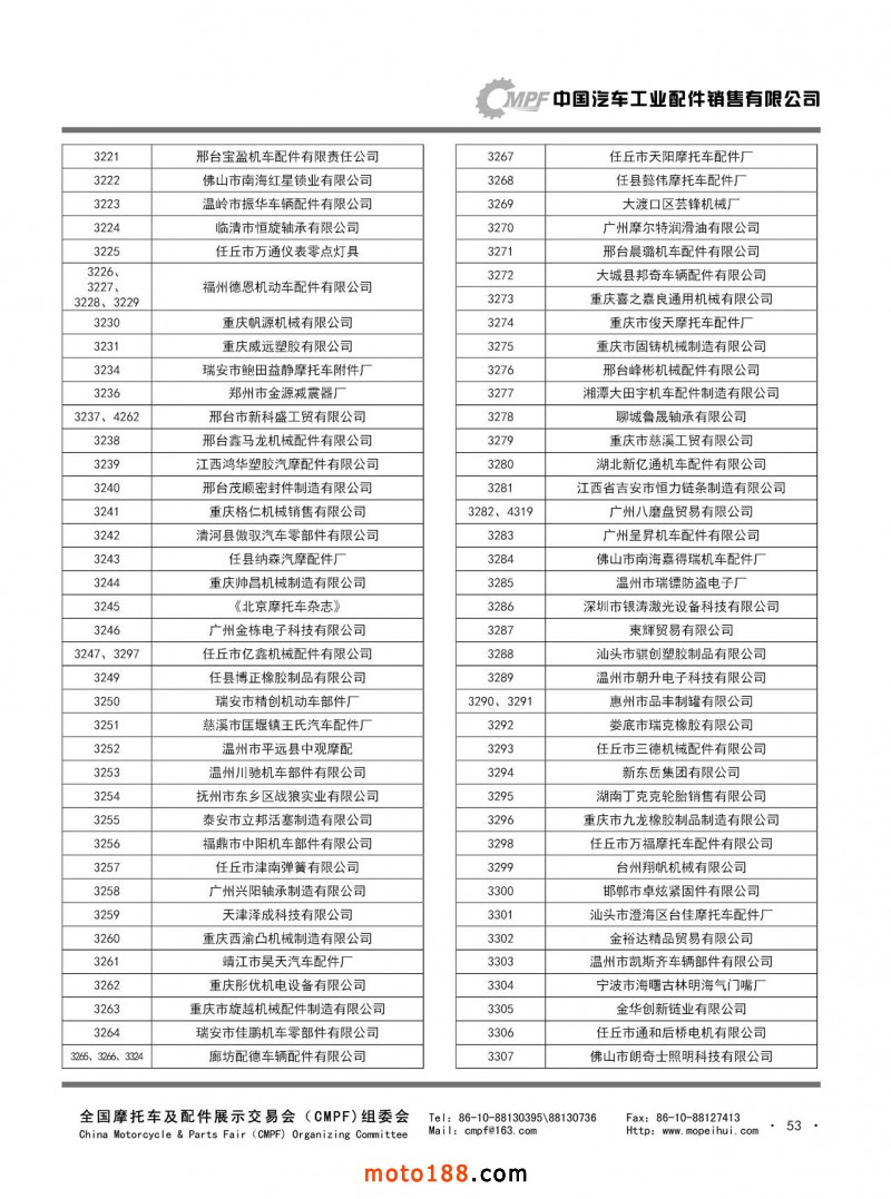 內(nèi)53 第76屆(2018秋)全國(guó)摩托車及配件展示交易會(huì)-廣州站參展單位名錄第76屆(2018秋)全國(guó)摩托車及配件展示交易會(huì)-廣州站參展單位名錄