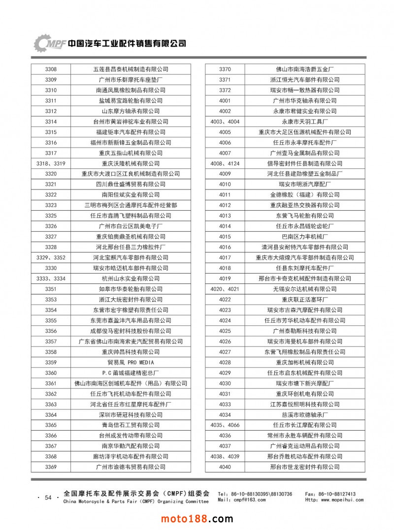 內(nèi)54 第76屆(2018秋)全國(guó)摩托車及配件展示交易會(huì)-廣州站參展單位名錄第76屆(2018秋)全國(guó)摩托車及配件展示交易會(huì)-廣州站參展單位名錄