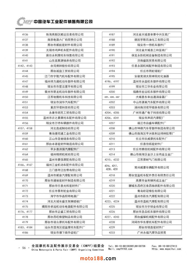 內(nèi)56 第76屆(2018秋)全國(guó)摩托車(chē)及配件展示交易會(huì)-廣州站參展單位名錄第76屆(2018秋)全國(guó)摩托車(chē)及配件展示交易會(huì)-廣州站參展單位名錄