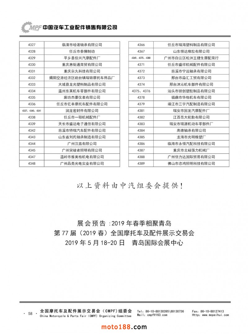 內(nèi)58 第76屆(2018秋)全國摩托車及配件展示交易會-廣州站參展單位名錄第76屆(2018秋)全國摩托車及配件展示交易會-廣州站參展單位名錄