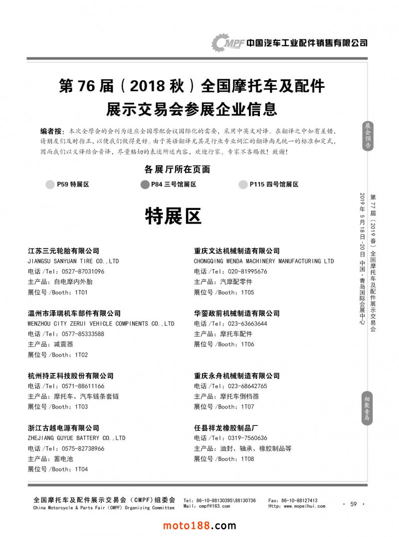 內(nèi)59 第76屆(2018秋)全國摩托車及配件展示交易會-廣州站參展企業(yè)信息