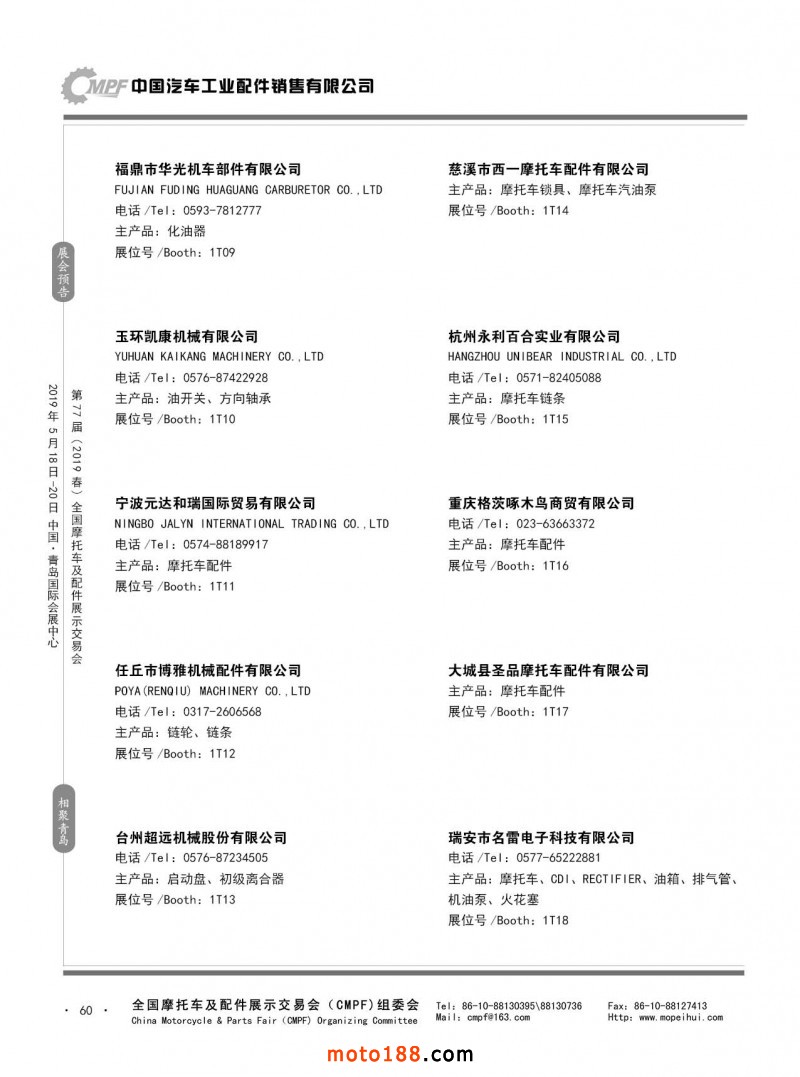 內(nèi)60 第76屆(2018秋)全國(guó)摩托車(chē)及配件展示交易會(huì)-廣州站參展企業(yè)信息