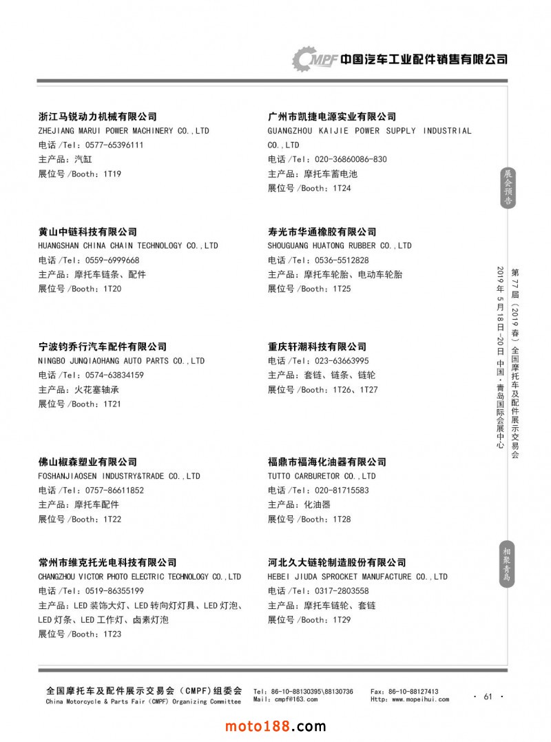 內(nèi)61 第76屆(2018秋)全國摩托車及配件展示交易會-廣州站參展企業(yè)信息