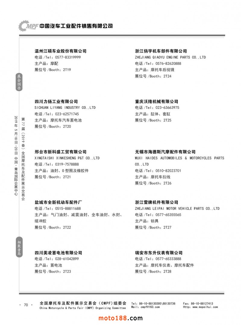 內(nèi)70 第76屆(2018秋)全國(guó)摩托車及配件展示交易會(huì)-廣州站參展企業(yè)信息
