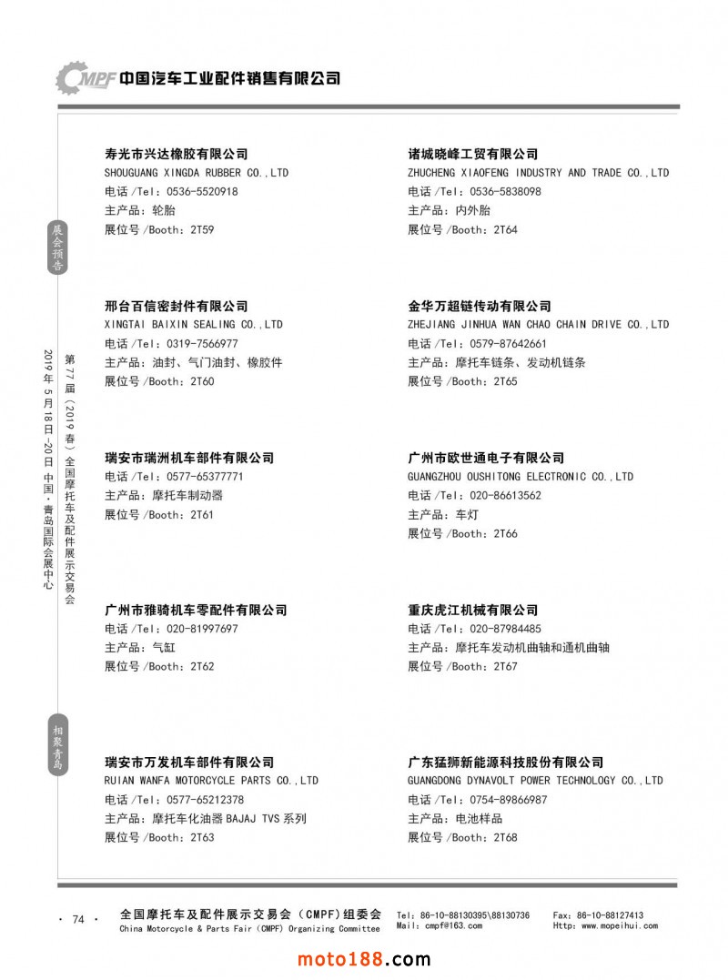 內(nèi)74 第76屆(2018秋)全國(guó)摩托車(chē)及配件展示交易會(huì)-廣州站參展企業(yè)信息