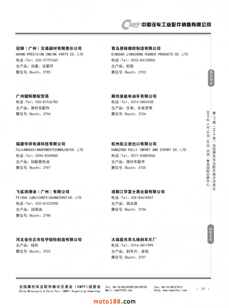 內(nèi)77 第76屆(2018秋)全國摩托車及配件展示交易會-廣州站參展企業(yè)信息