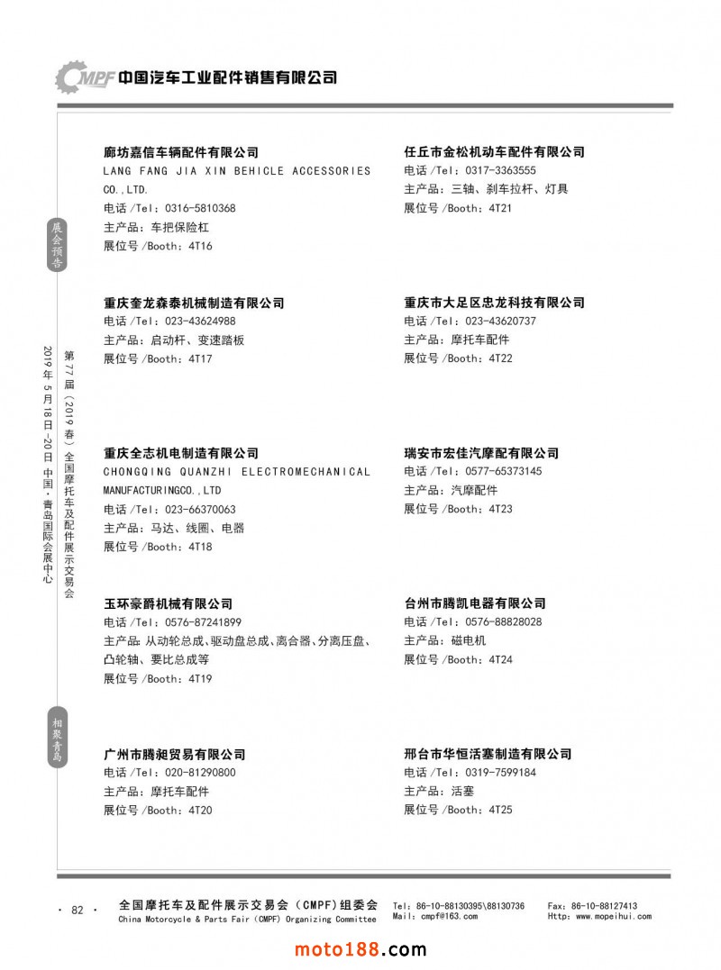 內(nèi)82 第76屆(2018秋)全國摩托車及配件展示交易會-廣州站參展企業(yè)信息