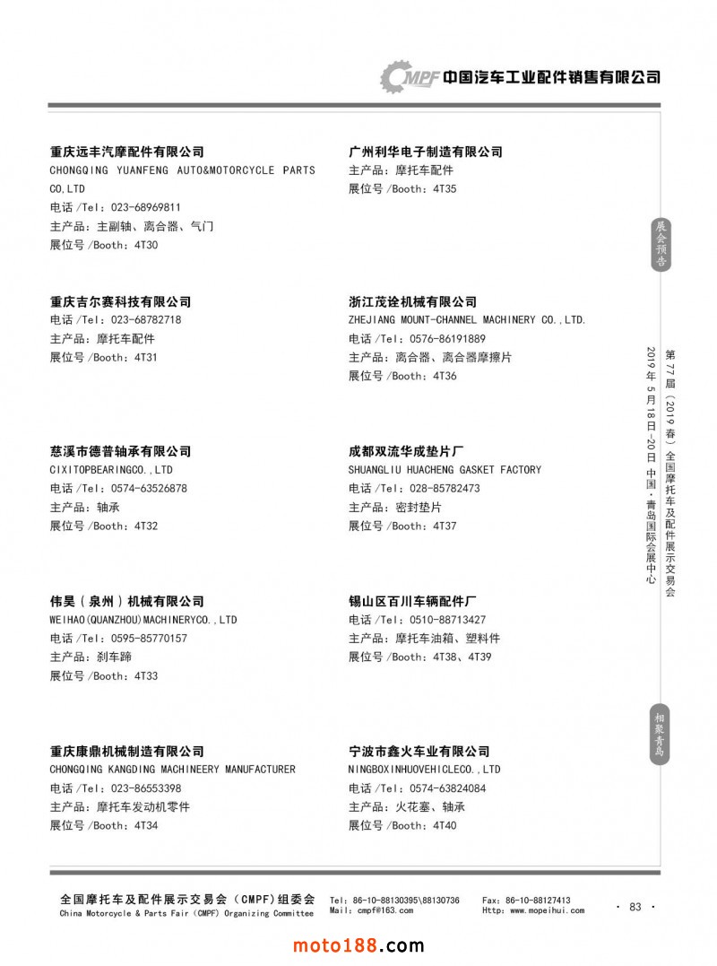 內(nèi)83 第76屆(2018秋)全國摩托車及配件展示交易會-廣州站參展企業(yè)信息