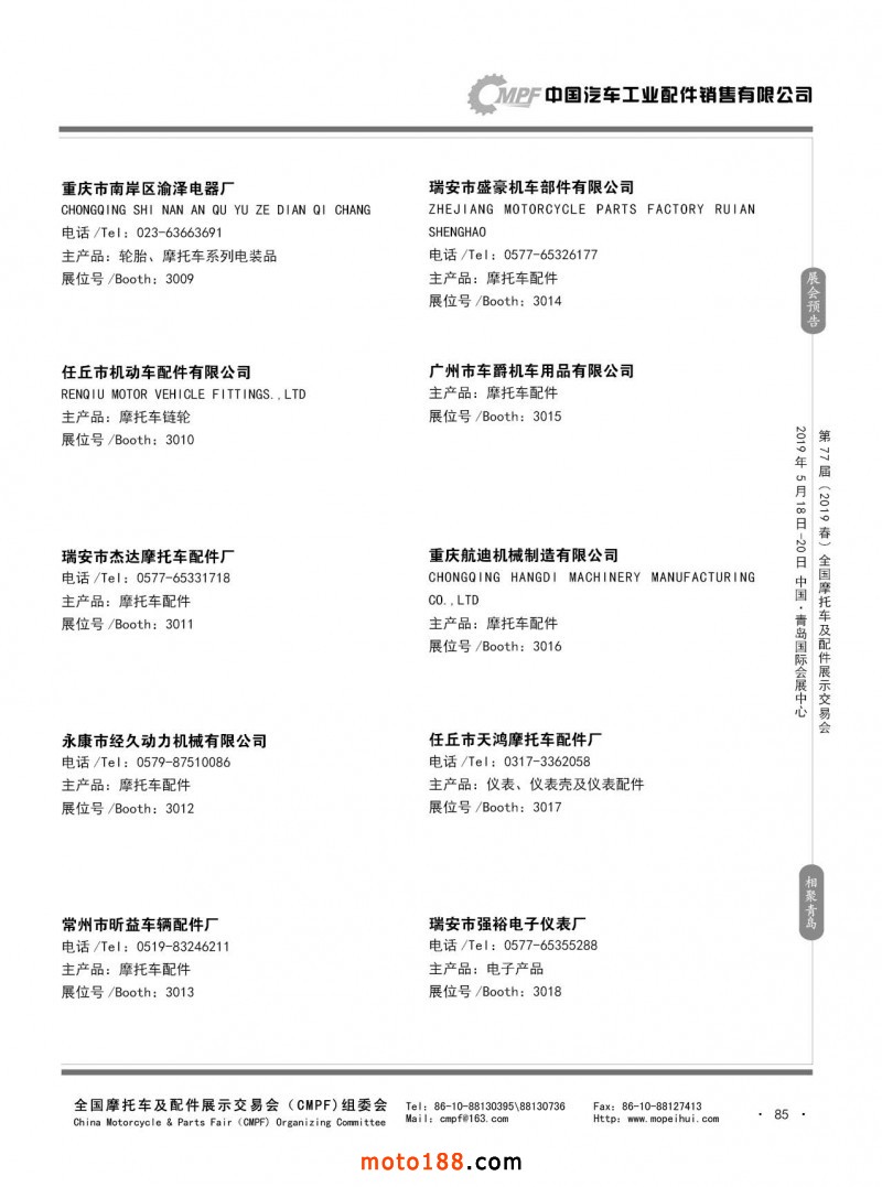 內(nèi)85 第76屆(2018秋)全國摩托車及配件展示交易會-廣州站參展企業(yè)信息