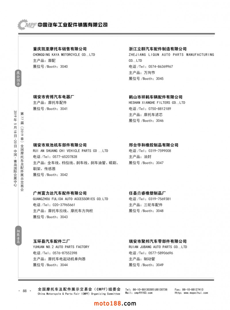 內(nèi)88 第76屆(2018秋)全國摩托車及配件展示交易會-廣州站參展企業(yè)信息