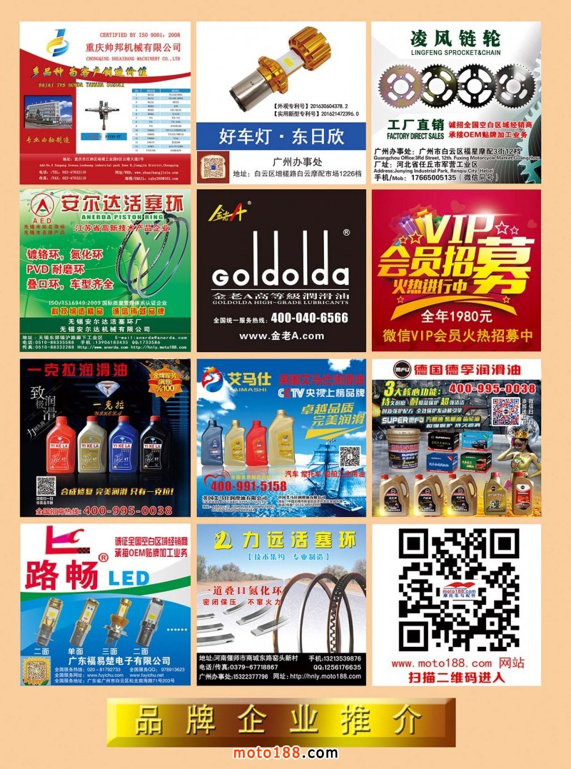 第76屆廣州全國摩托車及配件展示交易會正式開幕,歡迎朋友們來3109號展位,領(lǐng)取十一月《摩托車與配件》期刊雜志和《摩配華南市場指南》升級版,分享我們的果實!《華南指南》還將在廣州、重慶摩配市場全面派送,在廣州福星、松南市場門口、及白云三個檔口常年設(shè)立發(fā)行窗口;發(fā)行至廣州、重慶、江浙的幾大板塊主要廠家及全國的主要摩配市場。