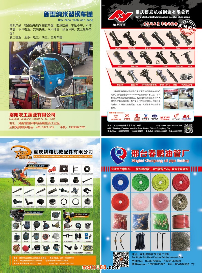 《摩托車與配件》(正在考慮是否變更為《電·摩配件》)不僅服務(wù)于摩配業(yè)之外,將重點(diǎn)增加電動(dòng)車業(yè)(二、三、四輪)的信息服務(wù);同時(shí)增加小型通機(jī)內(nèi)容(涉及工、農(nóng)、林、牧、副、漁、建等產(chǎn)業(yè))信息服務(wù);壓縮出刊期數(shù),適當(dāng)減少廣告的版面,突出雜志的內(nèi)容,增加原創(chuàng)內(nèi)容,增加可閱讀性,使雜志形成一定的風(fēng)格,將雜志辦成典藏版的精品,每期都有收藏價(jià)值;改變現(xiàn)有發(fā)行模式,電子版將發(fā)送至每一個(gè)好友;紙質(zhì)版實(shí)行精準(zhǔn)投放,有償發(fā)行,直達(dá)目標(biāo)受眾,具體為每個(gè)市場的發(fā)行,按我們提供的名單,由發(fā)行代理送雜志上門,我們按數(shù)量直接支付現(xiàn)金作為發(fā)行費(fèi)。權(quán)威性、收藏性、獨(dú)特性、可讀性這是明年雜志必須具備的特點(diǎn)。明年雜志特殊版面的征集工作已經(jīng)開始,壓縮期數(shù)后,特定版面的數(shù)量將減少,先定先得。