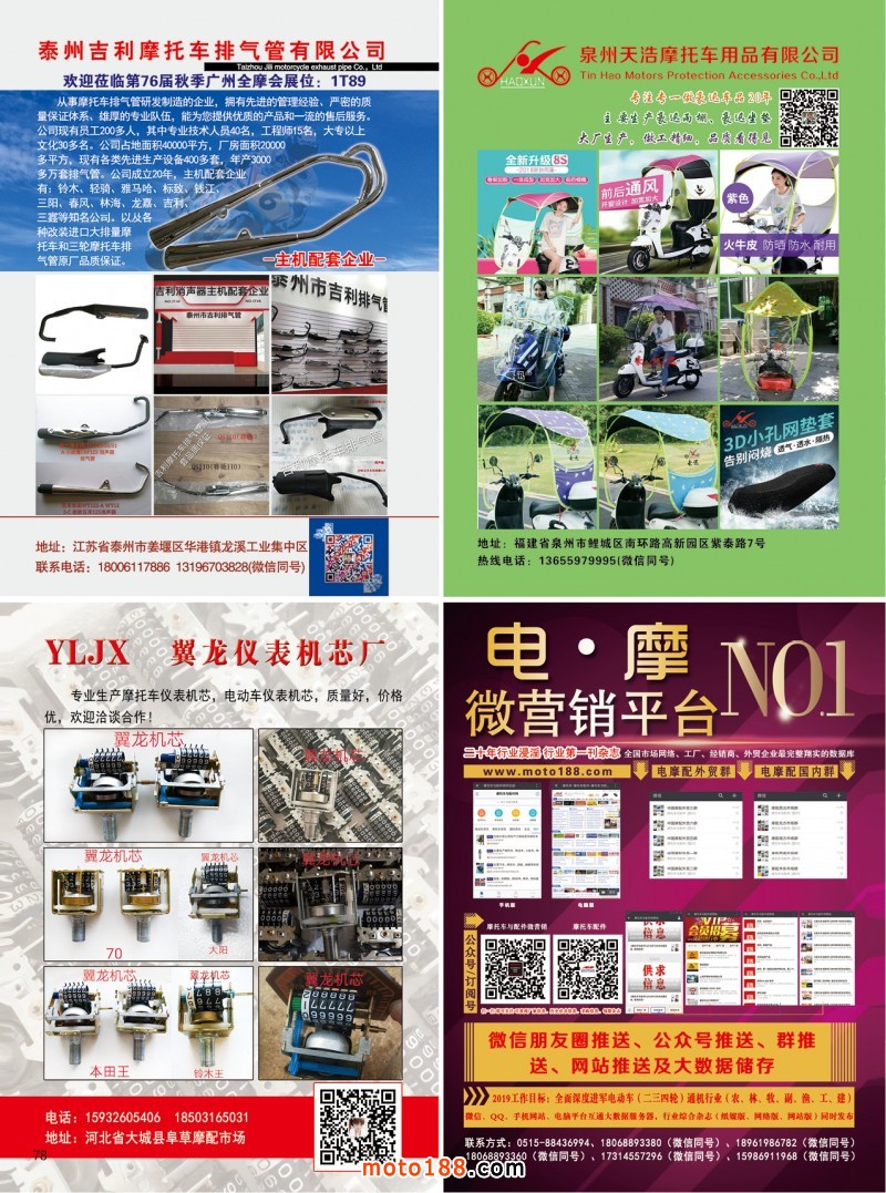 《摩托車與配件》(正在考慮是否變更為《電·摩配件》)不僅服務于摩配業(yè)之外,將重點增加電動車業(yè)(二、三、四輪)的信息服務;同時增加小型通機內(nèi)容(涉及工、農(nóng)、林、牧、副、漁、建等產(chǎn)業(yè))信息服務;壓縮出刊期數(shù),適當減少廣告的版面,突出雜志的內(nèi)容,增加原創(chuàng)內(nèi)容,增加可閱讀性,使雜志形成一定的風格,將雜志辦成典藏版的精品,每期都有收藏價值;改變現(xiàn)有發(fā)行模式,電子版將發(fā)送至每一個好友;紙質版實行精準投放,有償發(fā)行,直達目標受眾,具體為每個市場的發(fā)行,按我們提供的名單,由發(fā)行代理送雜志上門,我們按數(shù)量直接支付現(xiàn)金作為發(fā)行費。權威性、收藏性、獨特性、可讀性這是明年雜志必須具備的特點。明年雜志特殊版面的征集工作已經(jīng)開始,壓縮期數(shù)后,特定版面的數(shù)量將減少,先定先得。