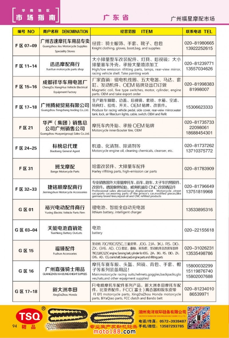 最新升級(jí)的《摩配華南市場(chǎng)指南》升級(jí)版在第76屆廣州全國(guó)摩托車及配件展示交易會(huì)上首發(fā),歡迎朋友們來3109號(hào)展位。接著將在廣州、重慶摩配市場(chǎng)全面派送,在廣州福星、松南市場(chǎng)門口、及白云三個(gè)檔口常年設(shè)立發(fā)行窗口;發(fā)行至廣州、重慶、江浙的幾大板塊主要廠家及全國(guó)的主要摩配市場(chǎng)。