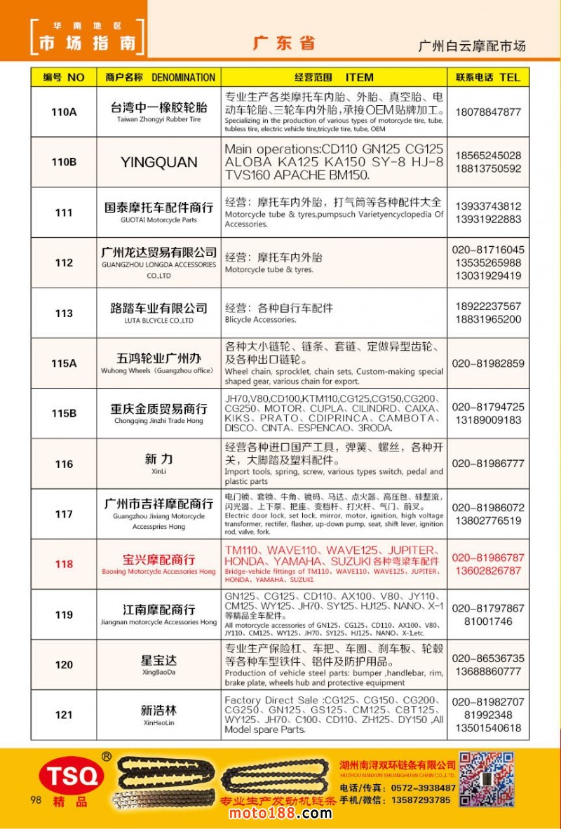 最新升級的《摩配華南市場指南》升級版在第76屆廣州全國摩托車及配件展示交易會上首發(fā),歡迎朋友們來3109號展位。接著將在廣州、重慶摩配市場全面派送,在廣州福星、松南市場門口、及白云三個檔口常年設(shè)立發(fā)行窗口;發(fā)行至廣州、重慶、江浙的幾大板塊主要廠家及全國的主要摩配市場。