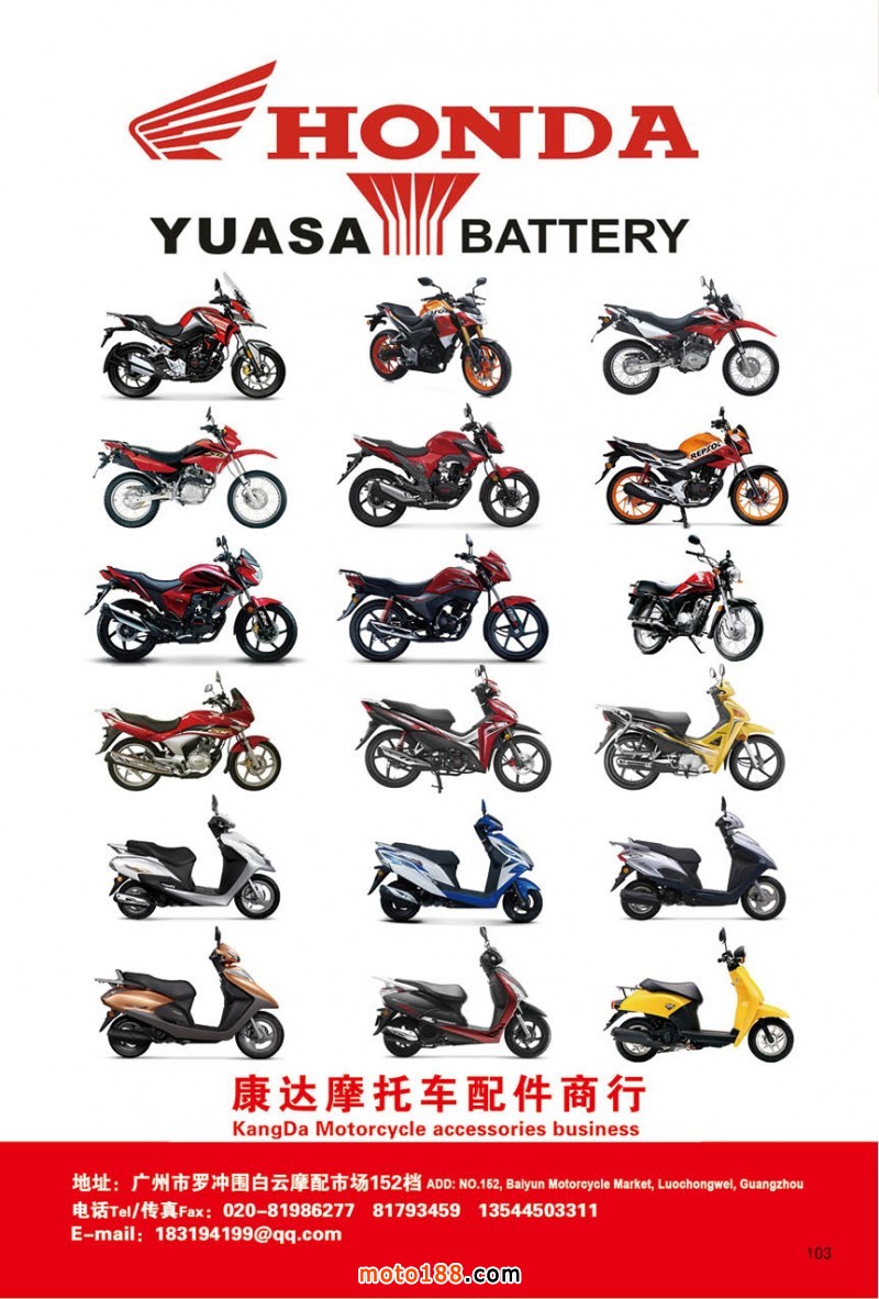 最新升級的《摩配華南市場指南》升級版在第76屆廣州全國摩托車及配件展示交易會上首發(fā),歡迎朋友們來3109號展位。接著將在廣州、重慶摩配市場全面派送,在廣州福星、松南市場門口、及白云三個檔口常年設(shè)立發(fā)行窗口;發(fā)行至廣州、重慶、江浙的幾大板塊主要廠家及全國的主要摩配市場。