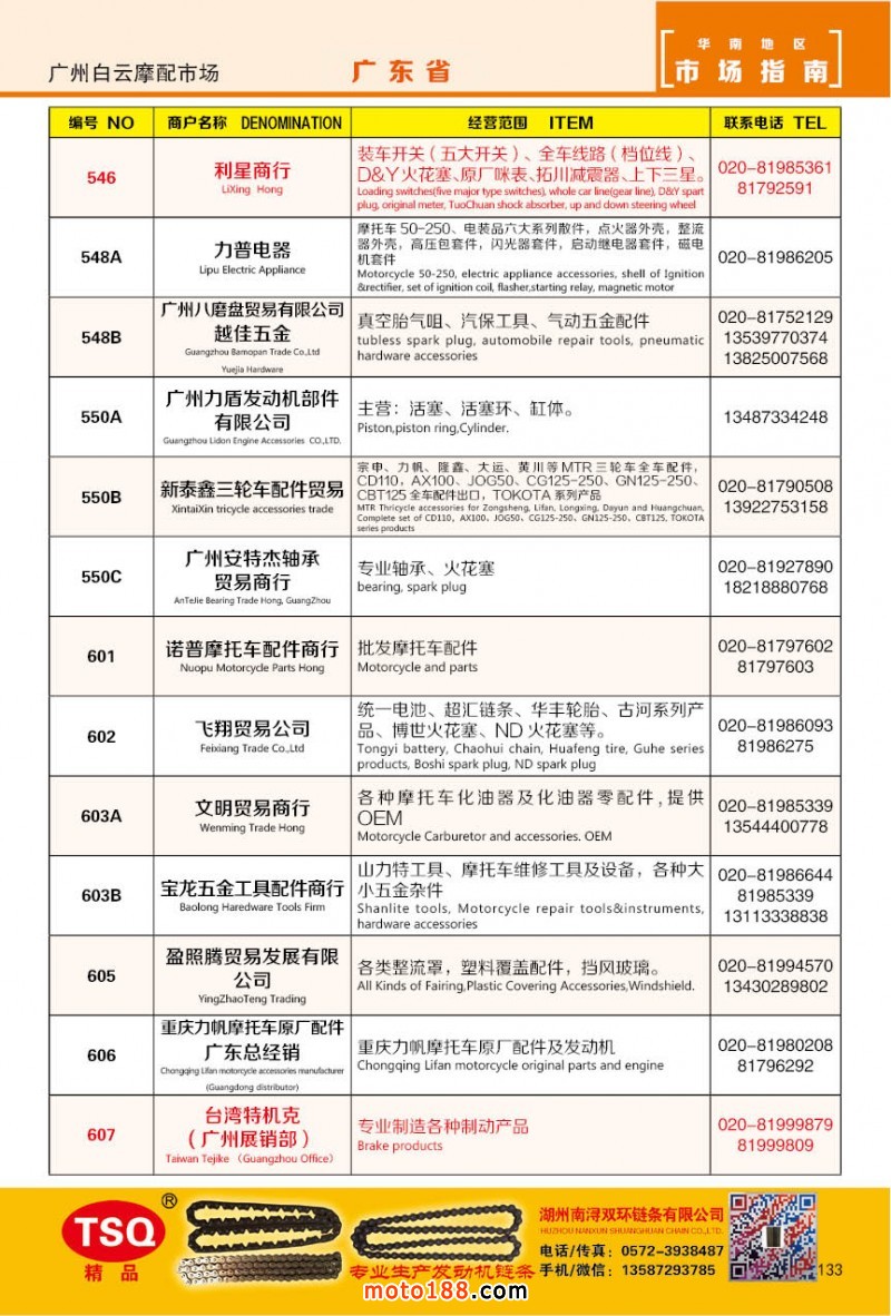 最新升級(jí)的《摩配華南市場(chǎng)指南》升級(jí)版在第76屆廣州全國(guó)摩托車及配件展示交易會(huì)上首發(fā),歡迎朋友們來(lái)3109號(hào)展位。接著將在廣州、重慶摩配市場(chǎng)全面派送,在廣州福星、松南市場(chǎng)門口、及白云三個(gè)檔口常年設(shè)立發(fā)行窗口;發(fā)行至廣州、重慶、江浙的幾大板塊主要廠家及全國(guó)的主要摩配市場(chǎng)。