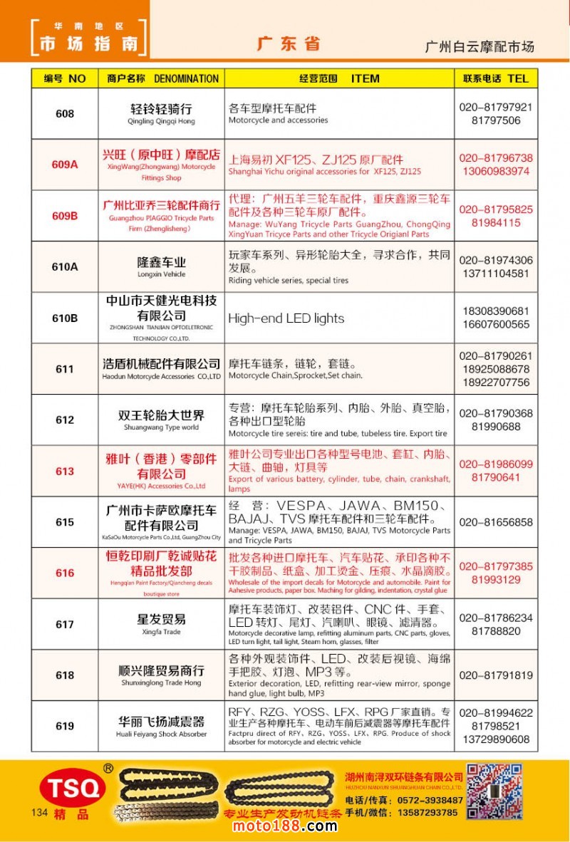 最新升級的《摩配華南市場指南》升級版在第76屆廣州全國摩托車及配件展示交易會上首發(fā),歡迎朋友們來3109號展位。接著將在廣州、重慶摩配市場全面派送,在廣州福星、松南市場門口、及白云三個(gè)檔口常年設(shè)立發(fā)行窗口;發(fā)行至廣州、重慶、江浙的幾大板塊主要廠家及全國的主要摩配市場。