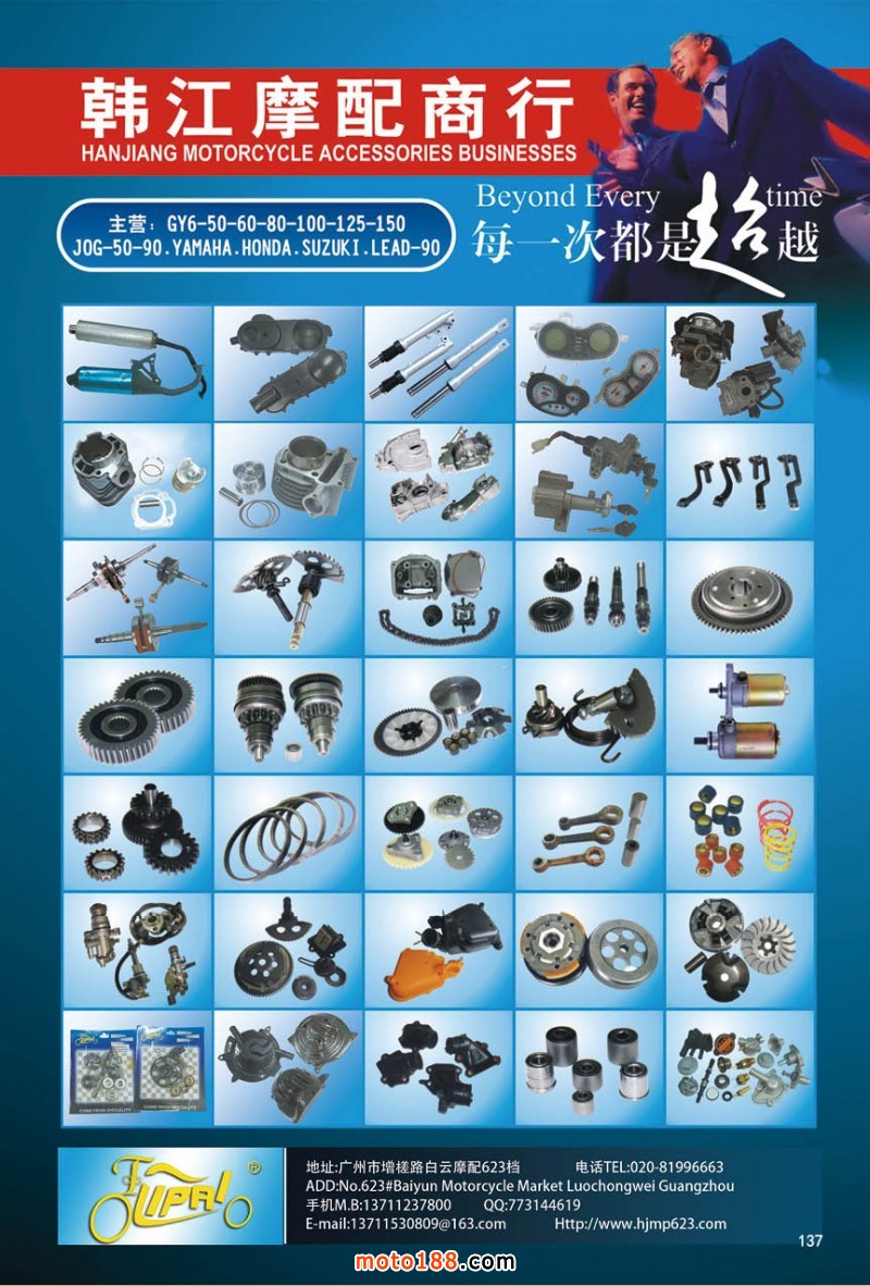 最新升級的《摩配華南市場指南》升級版在第76屆廣州全國摩托車及配件展示交易會上首發(fā),歡迎朋友們來3109號展位。接著將在廣州、重慶摩配市場全面派送,在廣州福星、松南市場門口、及白云三個檔口常年設(shè)立發(fā)行窗口;發(fā)行至廣州、重慶、江浙的幾大板塊主要廠家及全國的主要摩配市場。