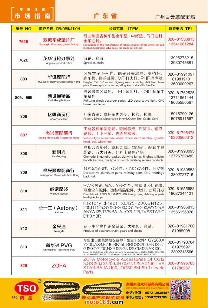 最新升級(jí)的《摩配華南市場(chǎng)指南》升級(jí)版在第76屆廣州全國(guó)摩托車及配件展示交易會(huì)上首發(fā),歡迎朋友們來3109號(hào)展位。接著將在廣州、重慶摩配市場(chǎng)全面派送,在廣州福星、松南市場(chǎng)門口、及白云三個(gè)檔口常年設(shè)立發(fā)行窗口;發(fā)行至廣州、重慶、江浙的幾大板塊主要廠家及全國(guó)的主要摩配市場(chǎng)。