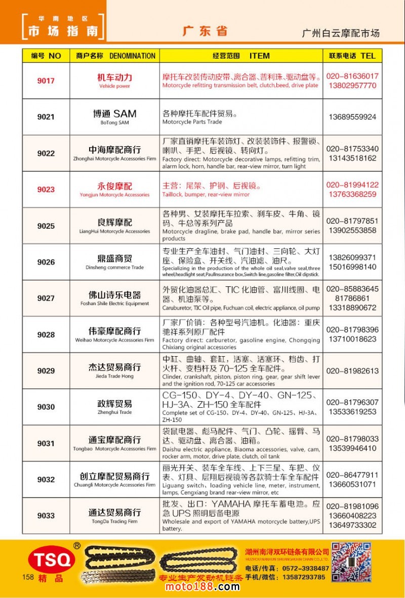 最新升級(jí)的《摩配華南市場(chǎng)指南》升級(jí)版在第76屆廣州全國(guó)摩托車及配件展示交易會(huì)上首發(fā),歡迎朋友們來(lái)3109號(hào)展位。接著將在廣州、重慶摩配市場(chǎng)全面派送,在廣州福星、松南市場(chǎng)門口、及白云三個(gè)檔口常年設(shè)立發(fā)行窗口;發(fā)行至廣州、重慶、江浙的幾大板塊主要廠家及全國(guó)的主要摩配市場(chǎng)。