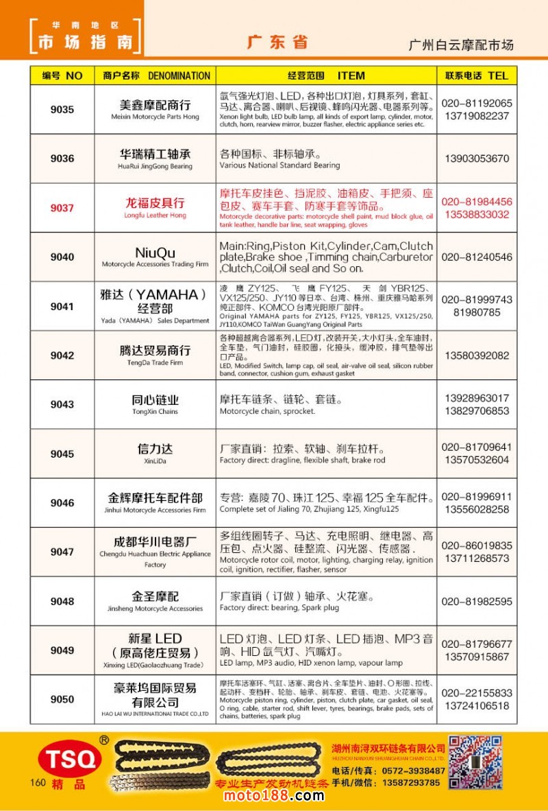 最新升級的《摩配華南市場指南》升級版在第76屆廣州全國摩托車及配件展示交易會上首發(fā),歡迎朋友們來3109號展位。接著將在廣州、重慶摩配市場全面派送,在廣州福星、松南市場門口、及白云三個檔口常年設立發(fā)行窗口;發(fā)行至廣州、重慶、江浙的幾大板塊主要廠家及全國的主要摩配市場。
