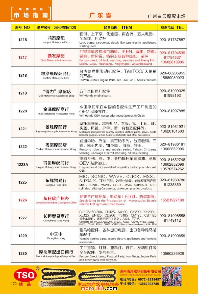 最新升級(jí)的《摩配華南市場(chǎng)指南》升級(jí)版在第76屆廣州全國(guó)摩托車及配件展示交易會(huì)上首發(fā),歡迎朋友們來3109號(hào)展位。接著將在廣州、重慶摩配市場(chǎng)全面派送,在廣州福星、松南市場(chǎng)門口、及白云三個(gè)檔口常年設(shè)立發(fā)行窗口;發(fā)行至廣州、重慶、江浙的幾大板塊主要廠家及全國(guó)的主要摩配市場(chǎng)。