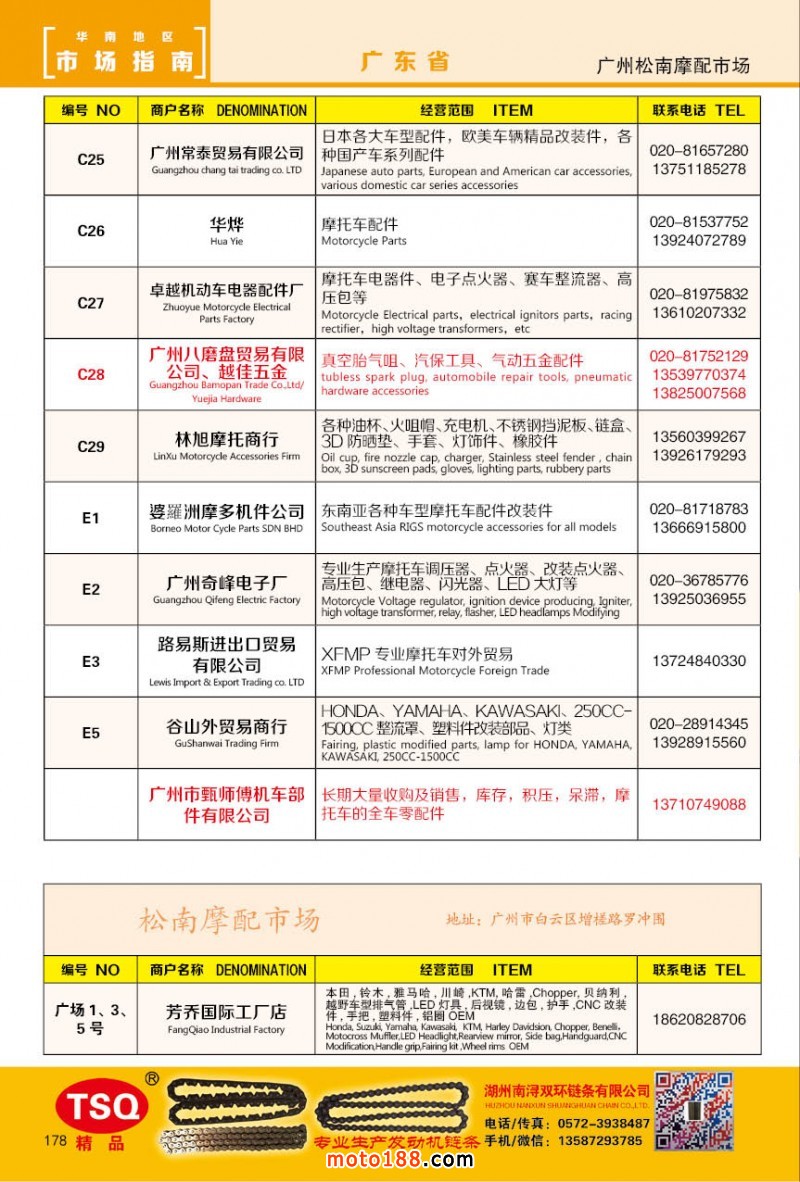 最新升級(jí)的《摩配華南市場(chǎng)指南》升級(jí)版在第76屆廣州全國(guó)摩托車及配件展示交易會(huì)上首發(fā),歡迎朋友們來(lái)3109號(hào)展位。接著將在廣州、重慶摩配市場(chǎng)全面派送,在廣州福星、松南市場(chǎng)門口、及白云三個(gè)檔口常年設(shè)立發(fā)行窗口;發(fā)行至廣州、重慶、江浙的幾大板塊主要廠家及全國(guó)的主要摩配市場(chǎng)。