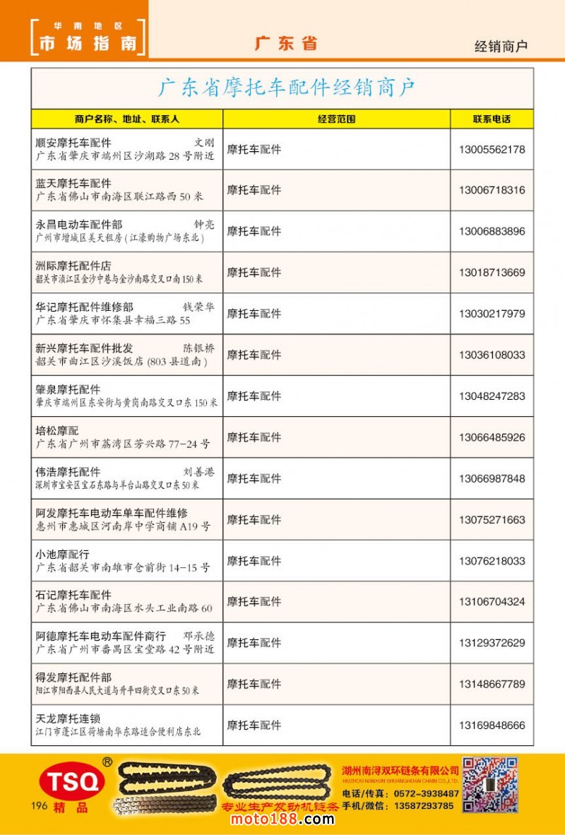 最新升級(jí)的《摩配華南市場(chǎng)指南》升級(jí)版在第76屆廣州全國摩托車及配件展示交易會(huì)上首發(fā),歡迎朋友們來3109號(hào)展位。接著將在廣州、重慶摩配市場(chǎng)全面派送,在廣州福星、松南市場(chǎng)門口、及白云三個(gè)檔口常年設(shè)立發(fā)行窗口;發(fā)行至廣州、重慶、江浙的幾大板塊主要廠家及全國的主要摩配市場(chǎng)。
