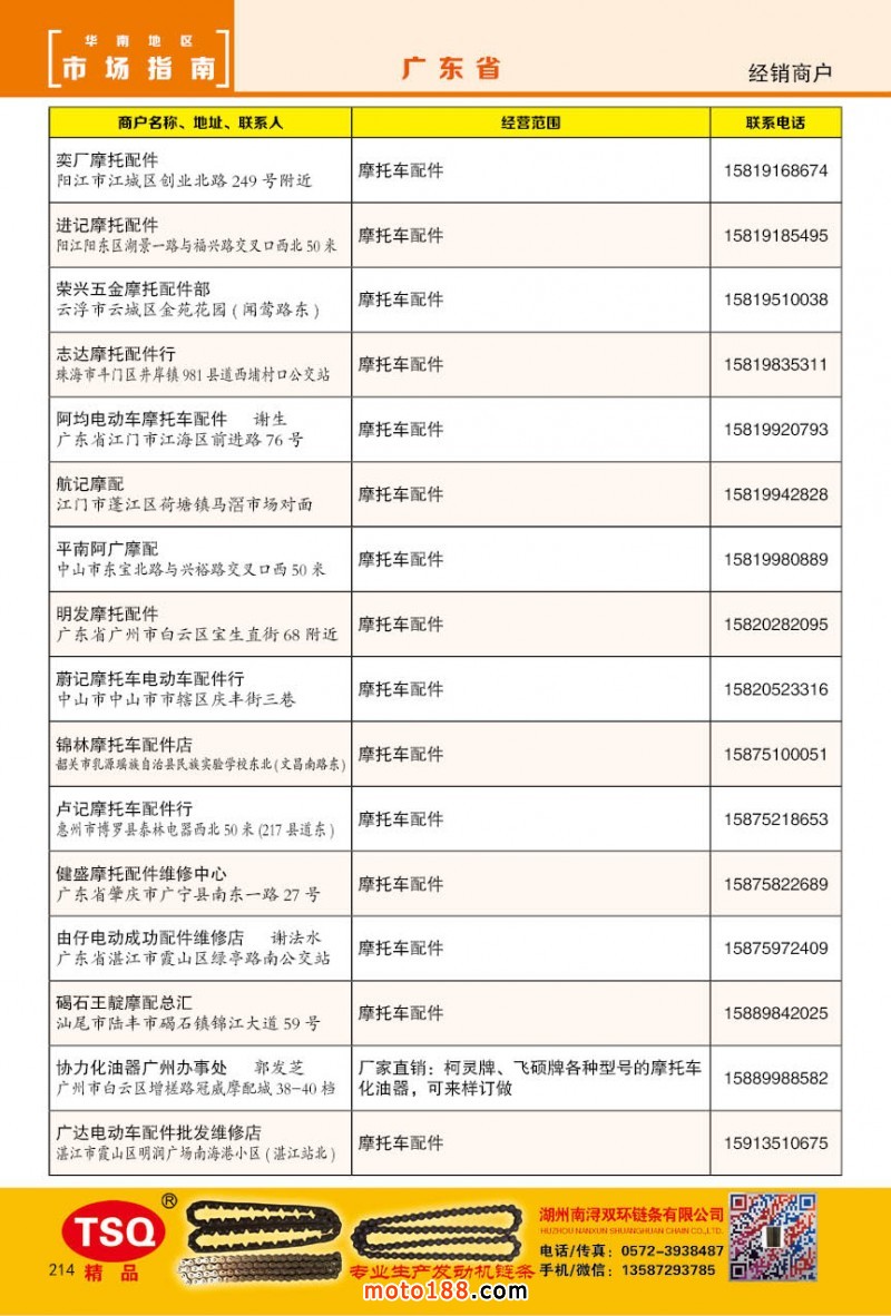 內(nèi)214 廣州市摩托車配件經(jīng)銷商戶