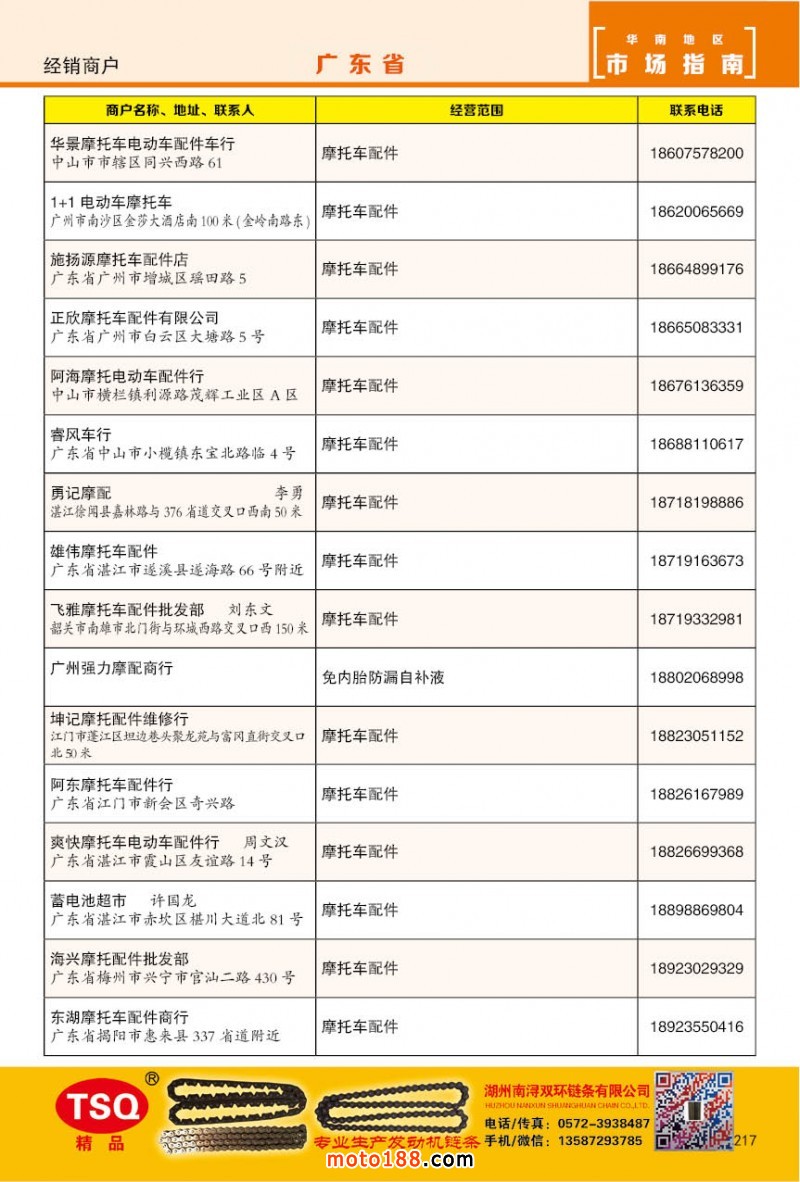 內(nèi)217 廣州市摩托車配件經(jīng)銷商戶