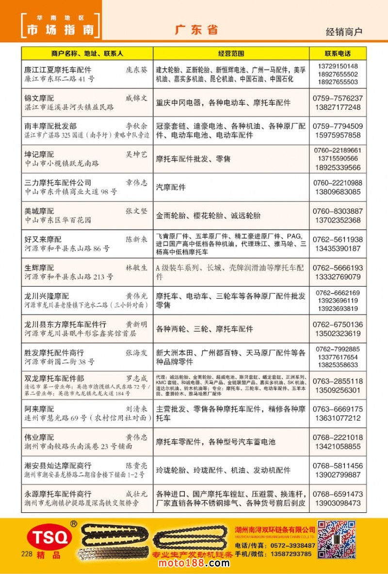 最新升級(jí)的《摩配華南市場(chǎng)指南》升級(jí)版在第76屆廣州全國摩托車及配件展示交易會(huì)上首發(fā),歡迎朋友們來3109號(hào)展位。接著將在廣州、重慶摩配市場(chǎng)全面派送,在廣州福星、松南市場(chǎng)門口、及白云三個(gè)檔口常年設(shè)立發(fā)行窗口;發(fā)行至廣州、重慶、江浙的幾大板塊主要廠家及全國的主要摩配市場(chǎng)。