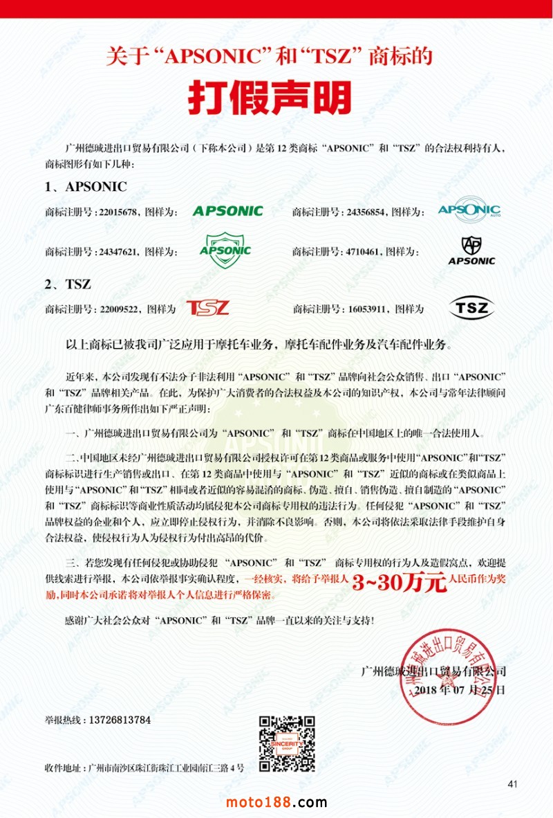 最新升級的《摩配華南市場指南》升級版在第76屆廣州全國摩托車及配件展示交易會上首發(fā),歡迎朋友們來3109號展位。接著將在廣州、重慶摩配市場全面派送,在廣州福星、松南市場門口、及白云三個(gè)檔口常年設(shè)立發(fā)行窗口;發(fā)行至廣州、重慶、江浙的幾大板塊主要廠家及全國的主要摩配市場。