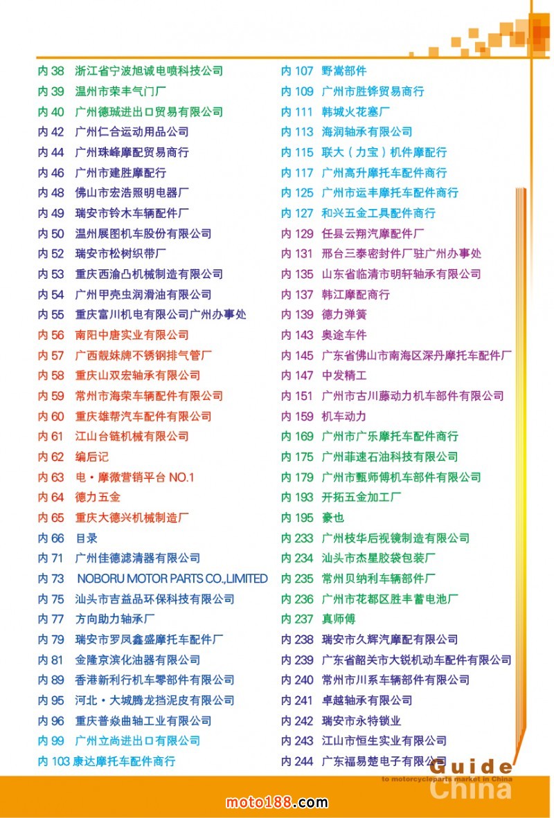 最新升級(jí)的《摩配華南市場(chǎng)指南》升級(jí)版在第76屆廣州全國(guó)摩托車(chē)及配件展示交易會(huì)上首發(fā),歡迎朋友們來(lái)3109號(hào)展位。接著將在廣州、重慶摩配市場(chǎng)全面派送,在廣州福星、松南市場(chǎng)門(mén)口、及白云三個(gè)檔口常年設(shè)立發(fā)行窗口;發(fā)行至廣州、重慶、江浙的幾大板塊主要廠家及全國(guó)的主要摩配市場(chǎng)。