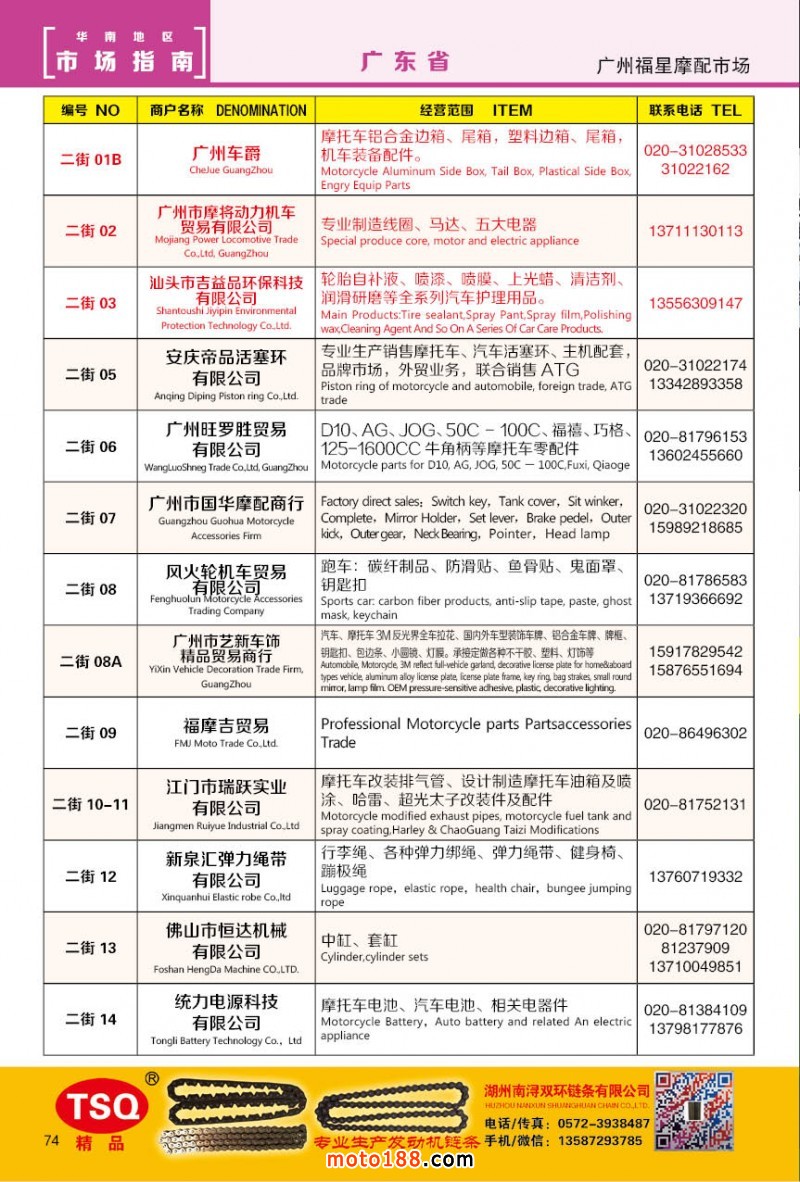 最新升級(jí)的《摩配華南市場(chǎng)指南》升級(jí)版在第76屆廣州全國(guó)摩托車(chē)及配件展示交易會(huì)上首發(fā),歡迎朋友們來(lái)3109號(hào)展位。接著將在廣州、重慶摩配市場(chǎng)全面派送,在廣州福星、松南市場(chǎng)門(mén)口、及白云三個(gè)檔口常年設(shè)立發(fā)行窗口;發(fā)行至廣州、重慶、江浙的幾大板塊主要廠(chǎng)家及全國(guó)的主要摩配市場(chǎng)。