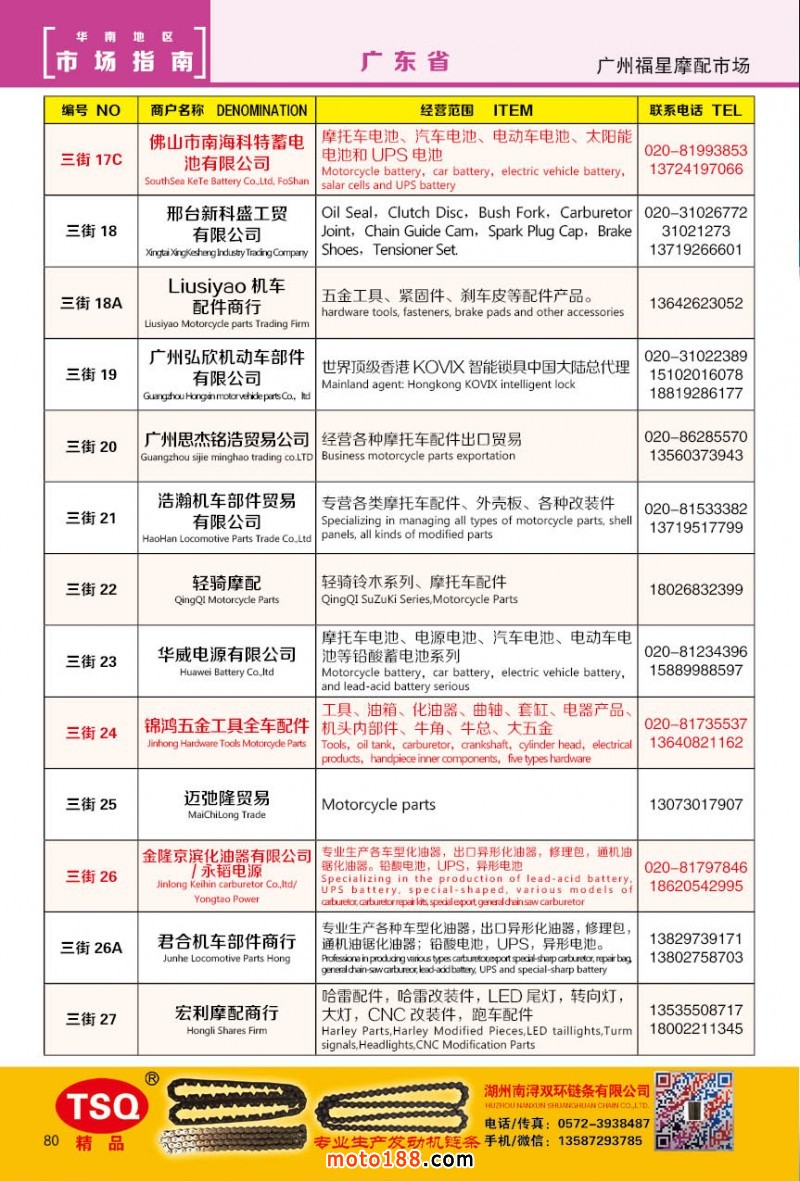 最新升級的《摩配華南市場指南》升級版在第76屆廣州全國摩托車及配件展示交易會上首發(fā),歡迎朋友們來3109號展位。接著將在廣州、重慶摩配市場全面派送,在廣州福星、松南市場門口、及白云三個(gè)檔口常年設(shè)立發(fā)行窗口;發(fā)行至廣州、重慶、江浙的幾大板塊主要廠家及全國的主要摩配市場。
