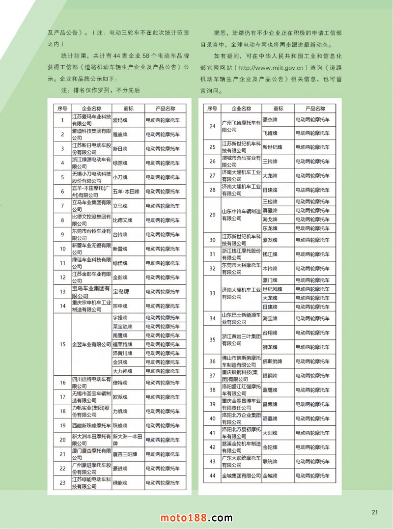 內(nèi)21 重磅公布!工信部最全電摩品牌目錄,44家企業(yè)58個(gè)電動(dòng)車(chē)品牌!