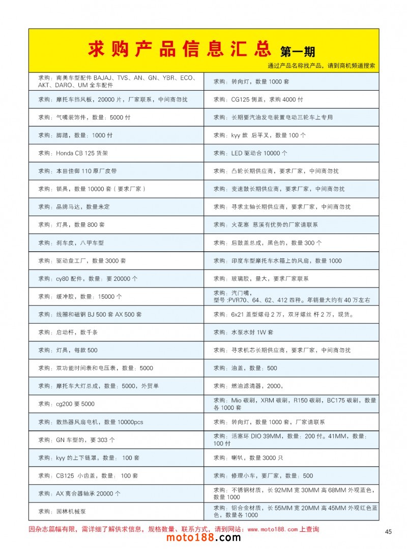 《摩托車與配件》(計(jì)劃變更為《電摩與配件》)不僅服務(wù)于摩配業(yè),將重點(diǎn)增加電動車業(yè)(二、三、四輪)的信息服務(wù);增加小型通機(jī)內(nèi)容(涉及工、農(nóng)、林、牧、副、漁、建等產(chǎn)業(yè))信息服務(wù),將其并入到摩托車部分的內(nèi)容;