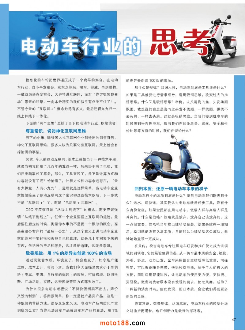 綜上所述,2019年我們將進(jìn)行兩項(xiàng)重大變革:以定位摩托車(chē)配件內(nèi)容為主體的《摩托車(chē)與配件》,將變更成電動(dòng)摩托與配件為主體《電摩與配件》;傳統(tǒng)紙媒為主的雜志,將變更為以互聯(lián)網(wǎng)+紙媒雜志,并以互聯(lián)網(wǎng)+新媒體為主。具體的舉措為: